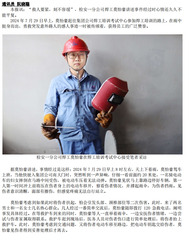 危難時(shí)刻伸援手:?jiǎn)T工莫怡豪雨中勇救突發(fā)意外路人獲贊譽(yù)