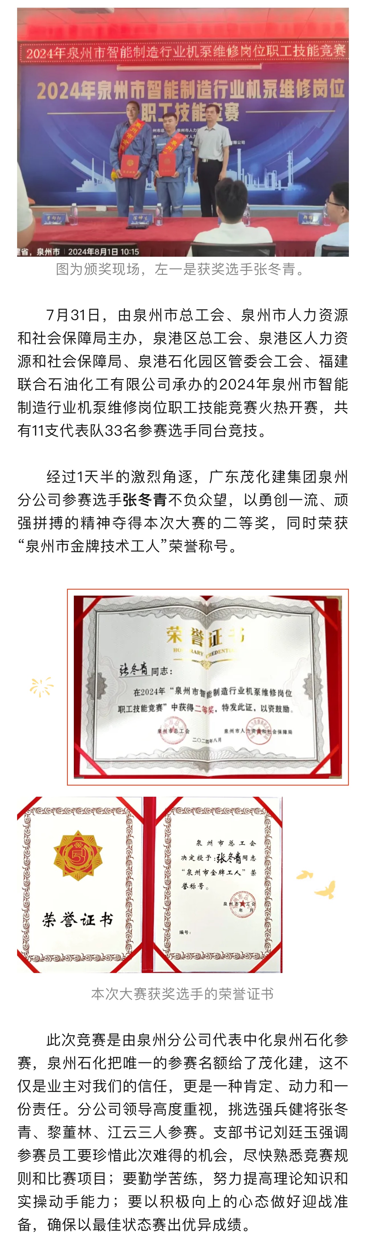 泉州分公司在泉州市維修機泵技能競賽創(chuàng)佳績