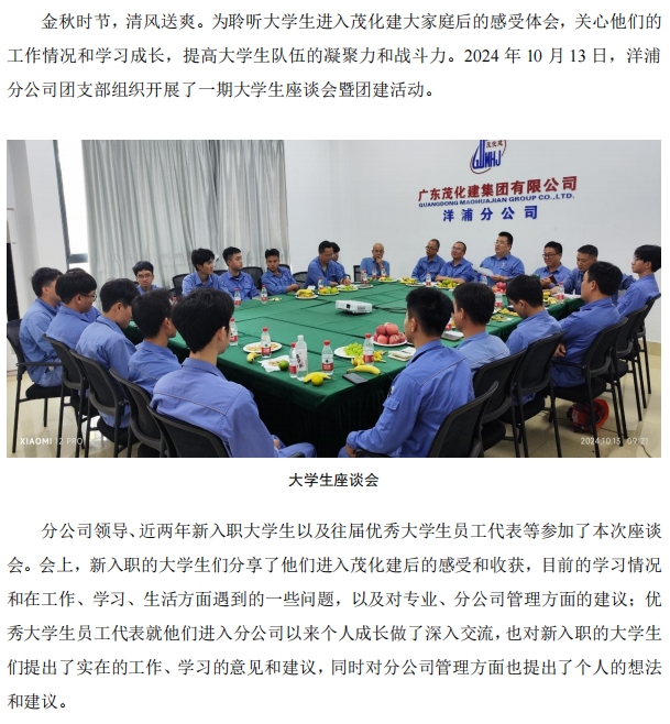 洋浦分公司團(tuán)支部組織大學(xué)生座談會(huì)暨團(tuán)建活動(dòng)