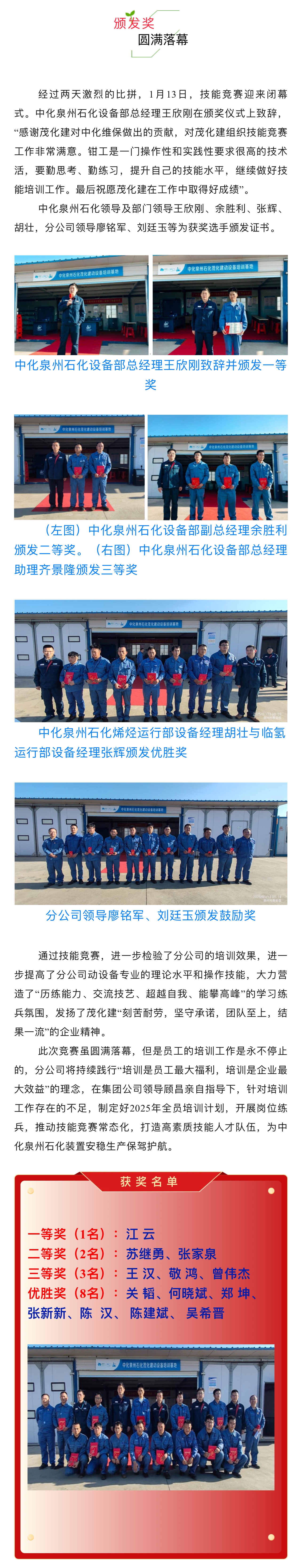 泉州分公司“第二屆”鉗工技能競賽圓滿落幕
