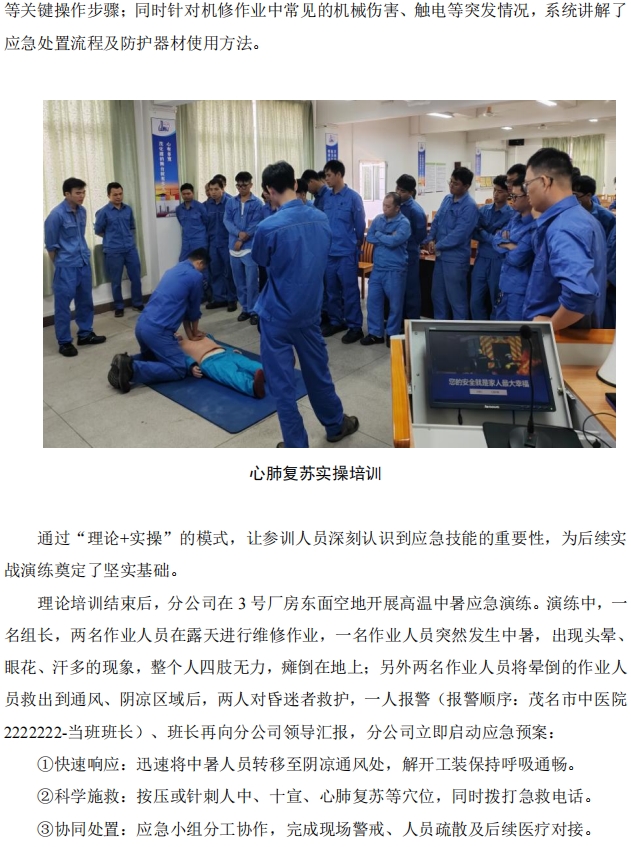 煉油機(jī)修分公司開展應(yīng)急技能培訓(xùn)及高溫中暑應(yīng)急演練