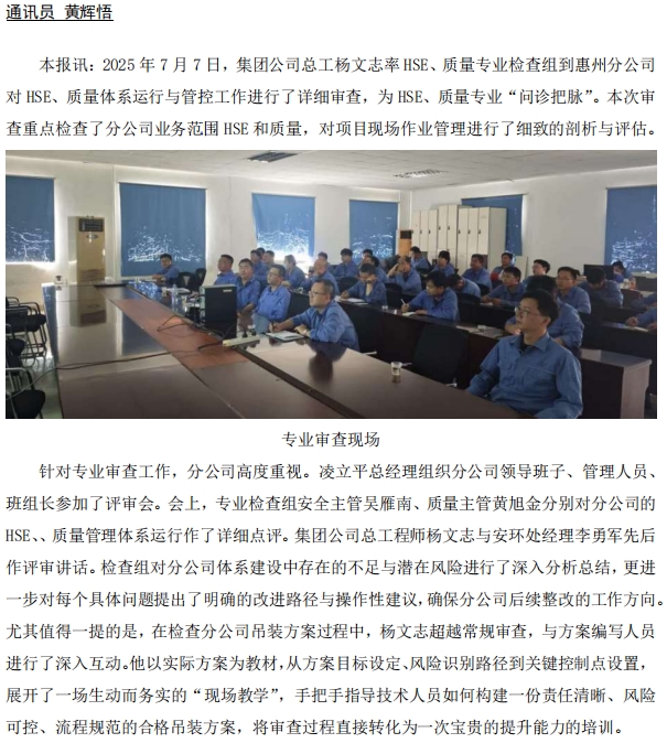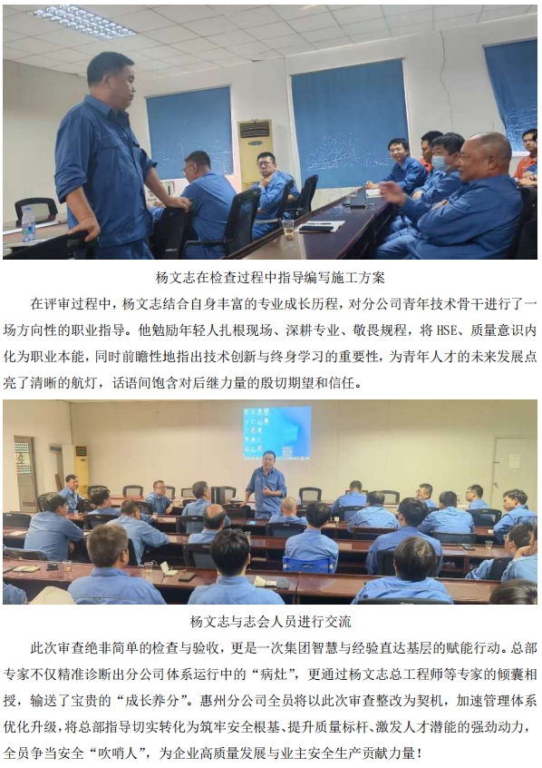 總部專(zhuān)家為惠州分公司體系管理運(yùn)行“問(wèn)診把脈”