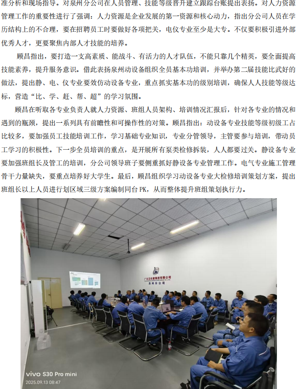 集團(tuán)公司領(lǐng)導(dǎo)到泉州分公司檢查指導(dǎo)工作